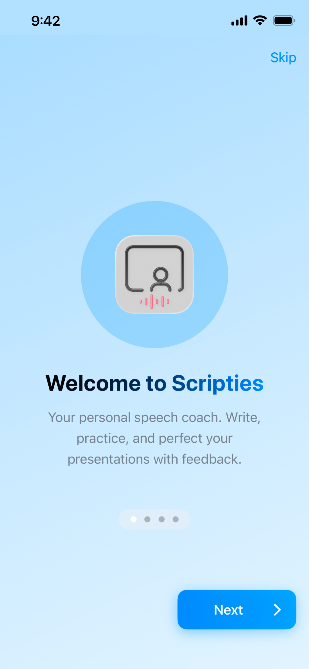 Scripties is your pocket speech coach: voice-following teleprompter, pacing analytics, and distraction‑free writing — all on-device.